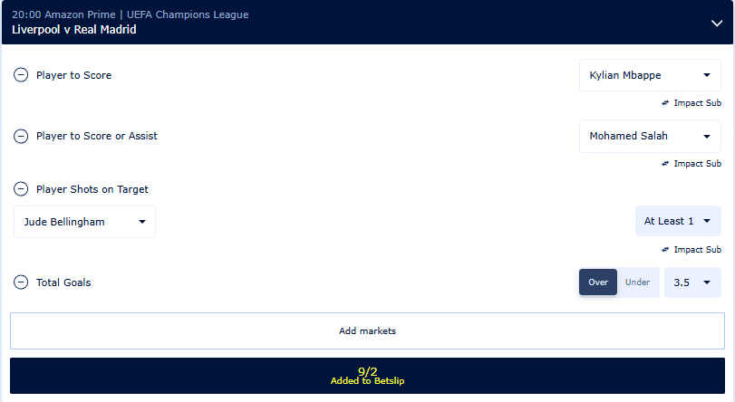 William Hill Bet Builder Tips – Liverpool v Real Madrid