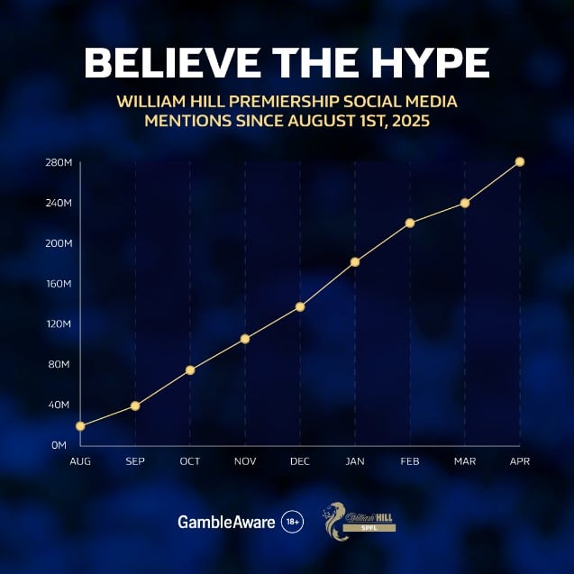 Social media analysis by William Hill News has revealed that mentions of the William Hill Premiership have totalled more than 280 million this season.