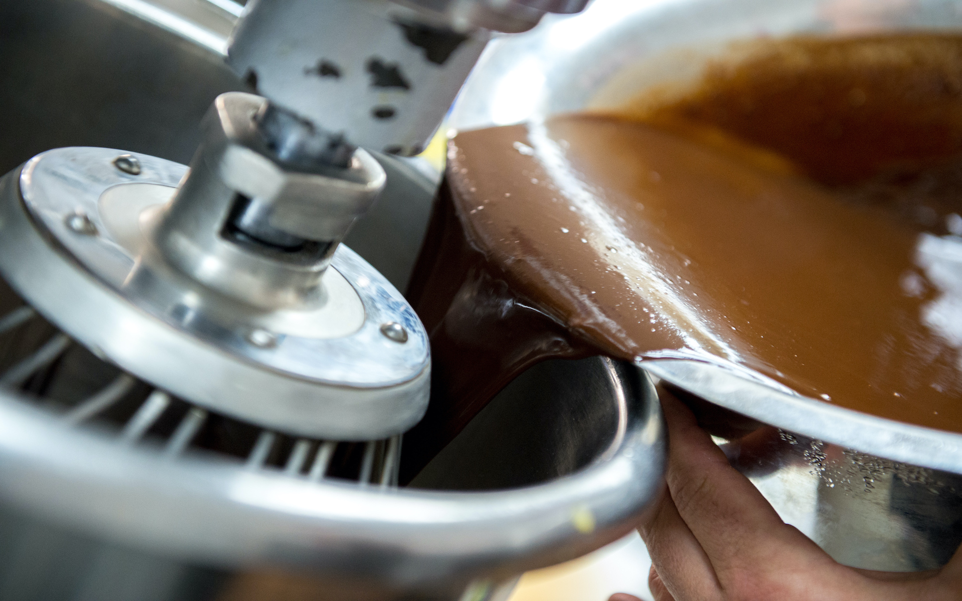 Take off the heat and add salt with the dark and milk chocolate. Leave to melt together before stirring until smooth.